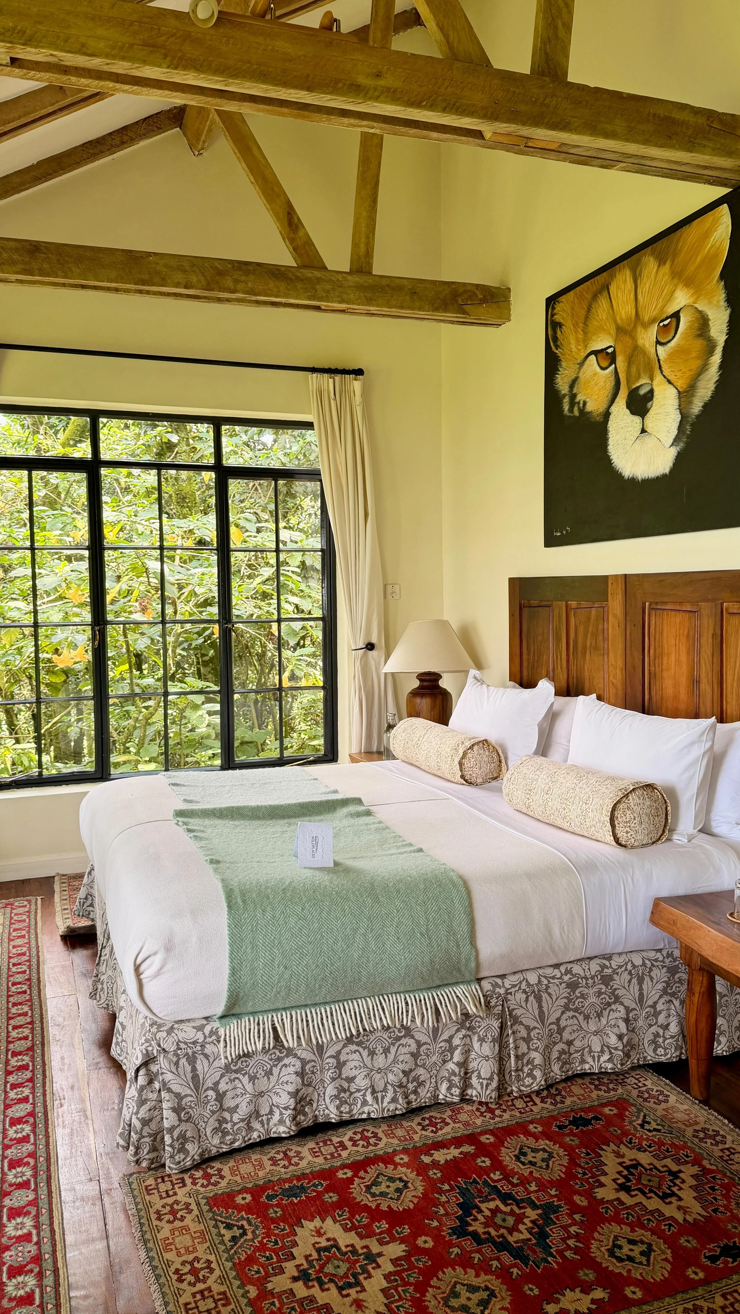 But apart from gorillas there are other experiences guests can enjoy at Volcanoes National Park, like crossing a dense bamboo forest, visit local communities, get involved in reforestation projects and stay in quite beautiful lodges… Those kind of lodges where luxury has no limits, you know? Think fireplace in your room and bathroom. A bathtub facing the dormant volcanoes. Think heated plunge pool in your room. Spa, wine tasting… The list goes on and on and on.
