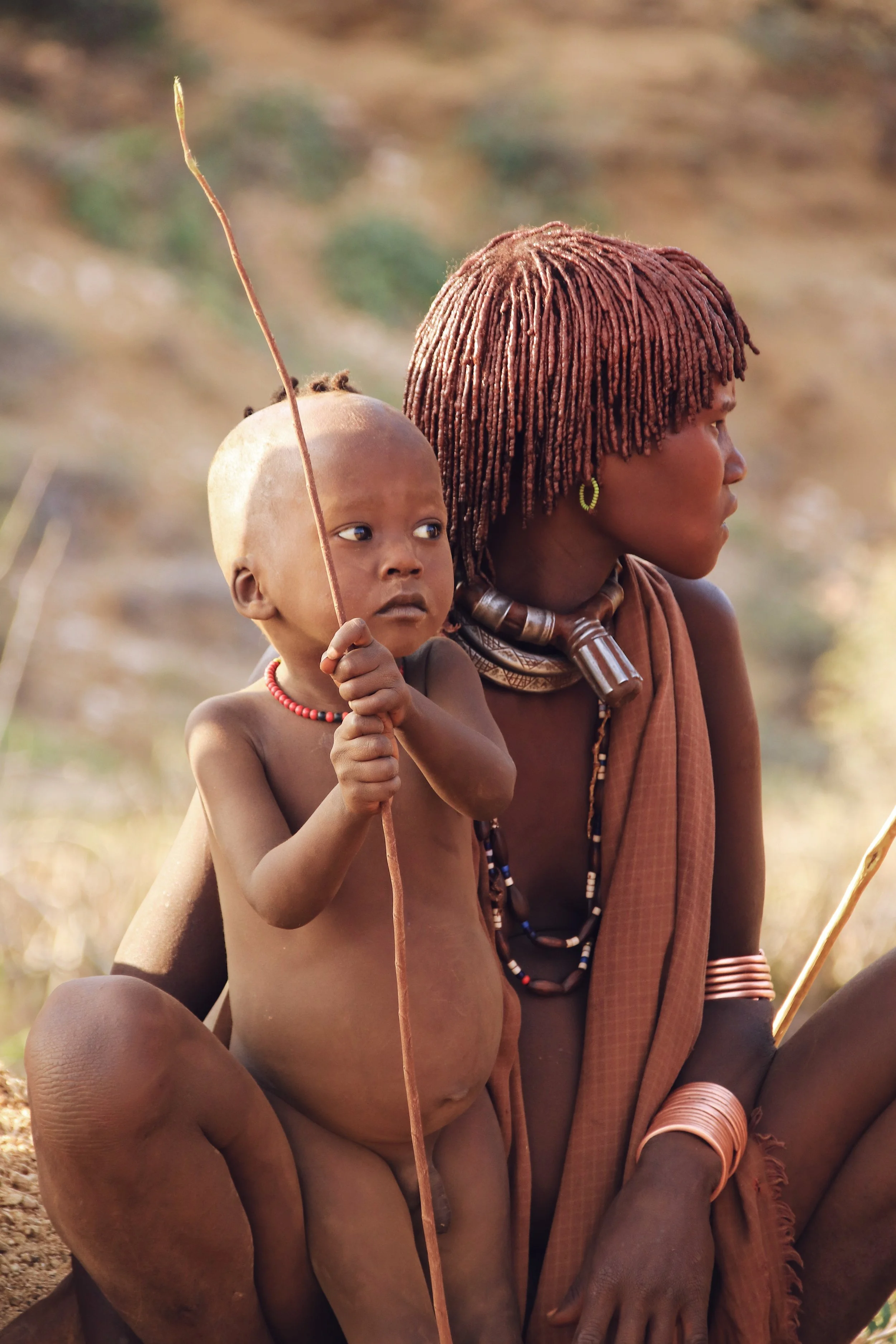 Throughout the day, our interaction with the young Hamar was friendly and not intrusive. They were curious with our cameras, not so much with us. A young girl grabbed our hands and with her index finger followed the line of our veins, fascinated with the colours in our skin. But it never went beyond that. And so we found ourselves at ease to take pictures, quietly standing close by.