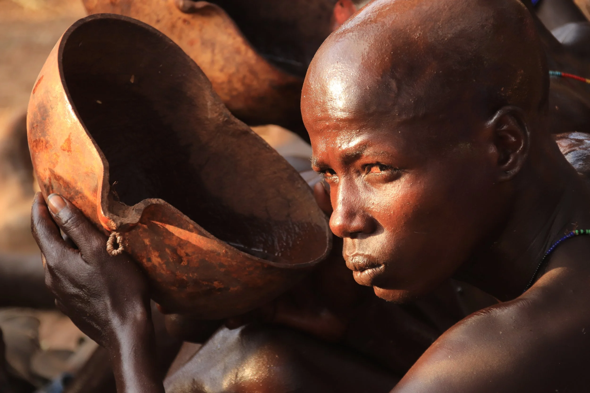 A visit to this community can be a surreal, out of this world experience: this time, we were surrounded by hundreds of people who were celebrating the bull-jumping ceremony, one of the most impressive cultural happenings we witnessed in Africa. It’s a day attended by local men, called the Maza, who have recently come of age and are ready to be married. They have jumped the cows on a previous ceremony and are now all sitting together, drinking and waiting for the next future-maza-boy to jump the cows too, later in the afternoon.